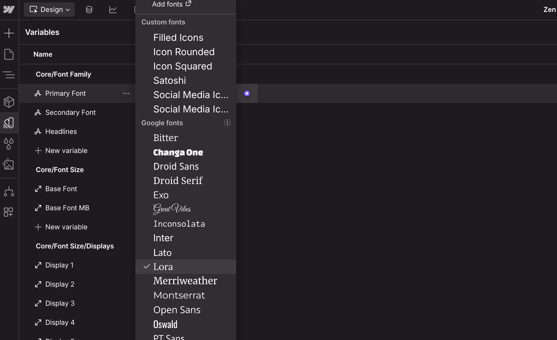 In order to do this, you just need to go to the Variables tab in the left sidebar, then select the Primary Font or Secondary Font variables, and change the font to any font for your business brand.